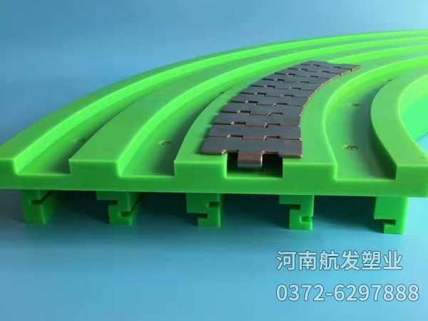 高分子聚乙烯彎道具有普通聚乙烯和其它工程塑料無可比擬的耐磨性、耐沖擊性、自潤滑性、耐腐蝕性。